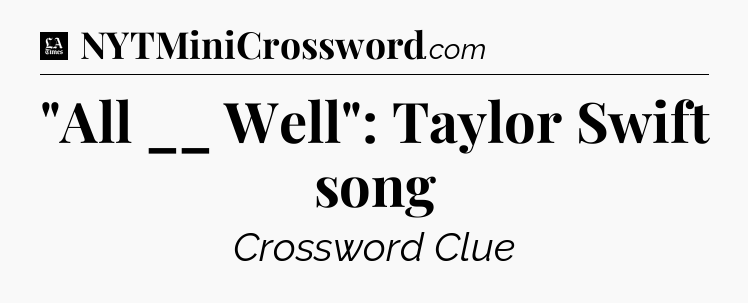 The Answer for “All __ Well”: Taylor Swift song – LA Times Crossword Clue Solution is: