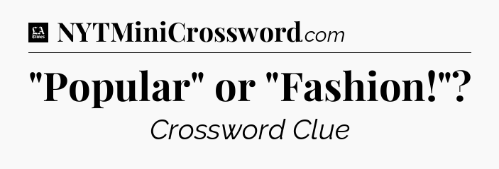The clue “”Popular” or “Fashion!”” most recently appeared in a LA Times Crossword on August 30, 2024.