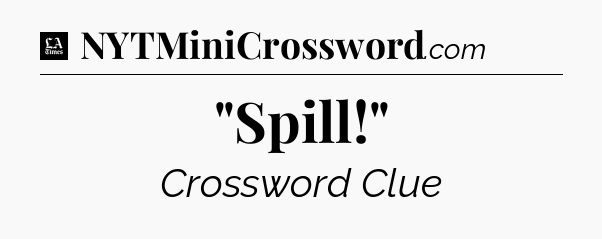 The clue “”Spill!”” most recently appeared in a LA Times Crossword on August 30, 2024.