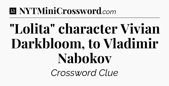 The clue “”Lolita” character Vivian Darkbloom, to Vladimir Nabokov” most recently appeared in a LA Times Crossword on August 31, 2019.