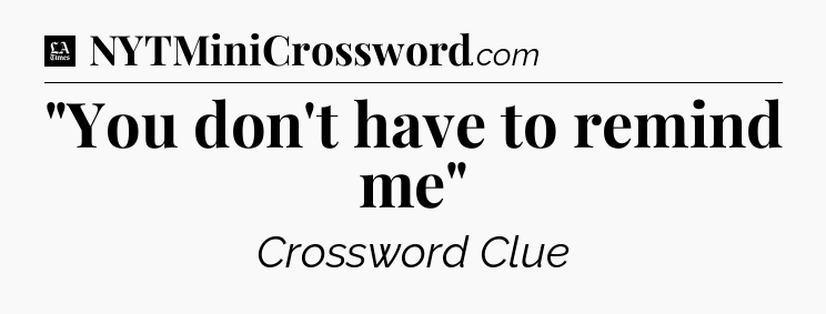 The clue “”You don’t have to remind me”” most recently appeared in a LA Times Crossword on August 4, 2019.