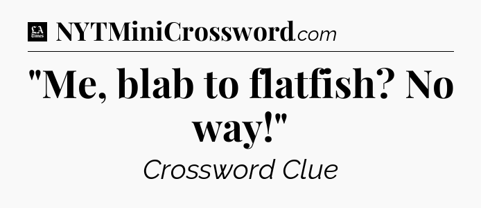 The clue “”Me, blab to flatfish? No way!”” most recently appeared in a LA Times Crossword on August 6, 2017.