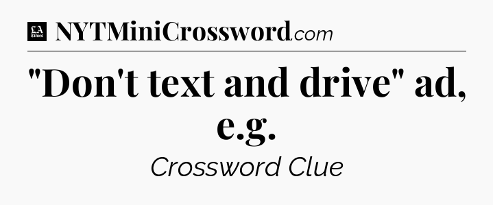 The clue “”Don’t text and drive” ad, e.g” most recently appeared in a LA Times Crossword on August 8, 2018.