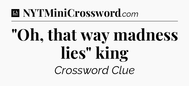 The Answer for “Oh, that way madness lies” king – LA Times Crossword Clue Solution is:
