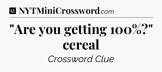The clue “”Are you getting 100%?” cereal” most recently appeared in a LA Times Crossword on September 12, 2019.