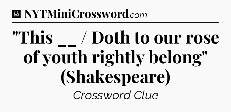 The clue “”This __ / Doth to our rose of youth rightly belong” (Shakespeare)” most recently appeared in a LA Times Crossword on September 12, 2019.