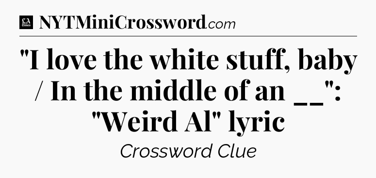 The Answer for “I love the white stuff, baby / In the middle of an __”: “Weird Al” lyric – LA Times Crossword Clue Solution is: