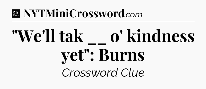 “”We’ll tak __ o’ kindness yet”: Burns” LA Times Crossword Clue: Frequently Asked Questions