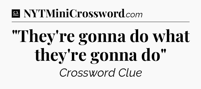 The clue “”They’re gonna do what they’re gonna do”” most recently appeared in a LA Times Crossword on September 17, 2022.