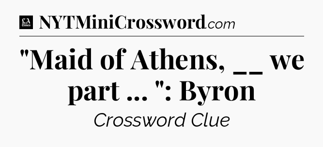The clue “”Maid of Athens, __ we part … “: Byron” most recently appeared in a LA Times Crossword on September 19, 2020.
