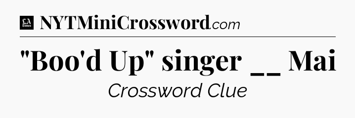 The clue “”Boo’d Up” singer __ Mai” most recently appeared in a LA Times Crossword on September 19, 2021.