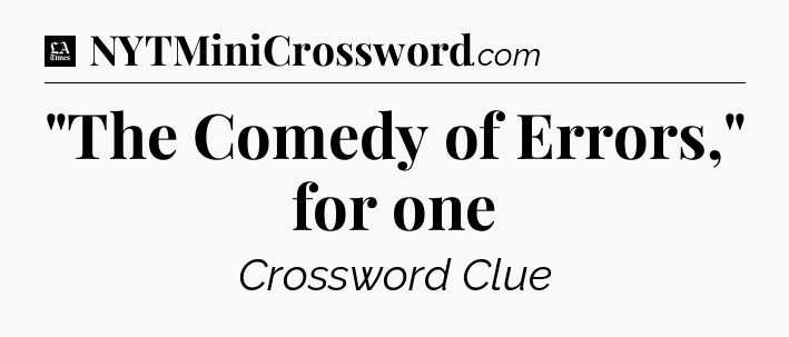 The clue “”The Comedy of Errors,” for one” most recently appeared in a LA Times Crossword on September 2, 2022.