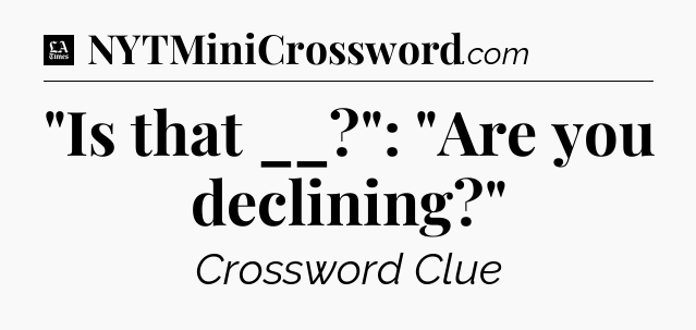 The clue “”Is that __?”: “Are you declining?”” most recently appeared in a LA Times Crossword on September 20, 2022.