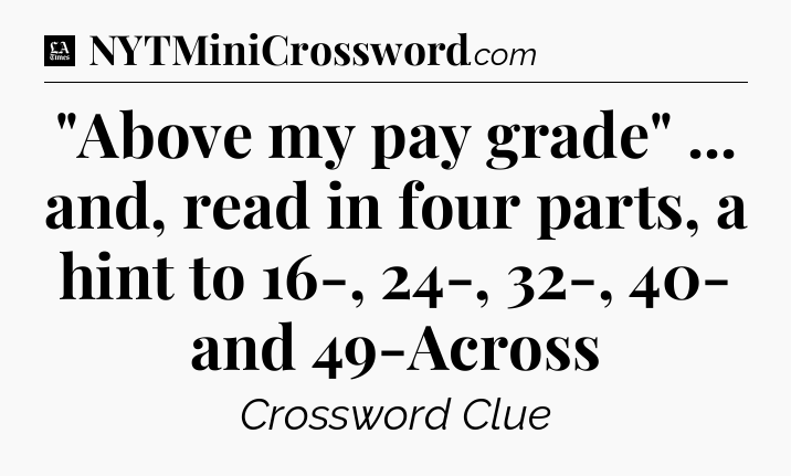 The clue “”Above my pay grade” … and, read in four parts, a hint to 16-, 24-, 32-, 40- and 49-Across” most recently appeared in a LA Times Crossword on September 21, 2018.