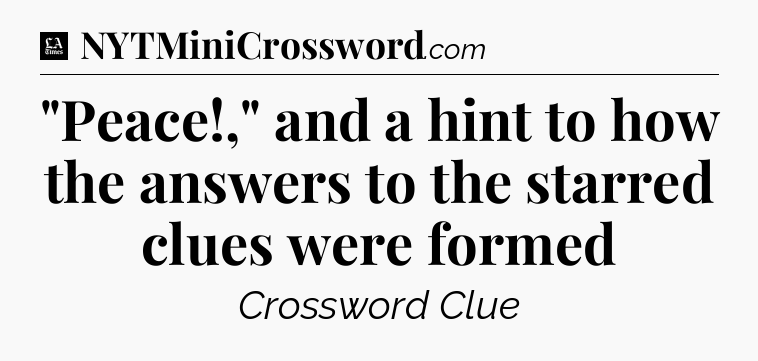 The clue “”Peace!,” and a hint to how the answers to the starred clues were formed” most recently appeared in a LA Times Crossword on September 23, 2022.