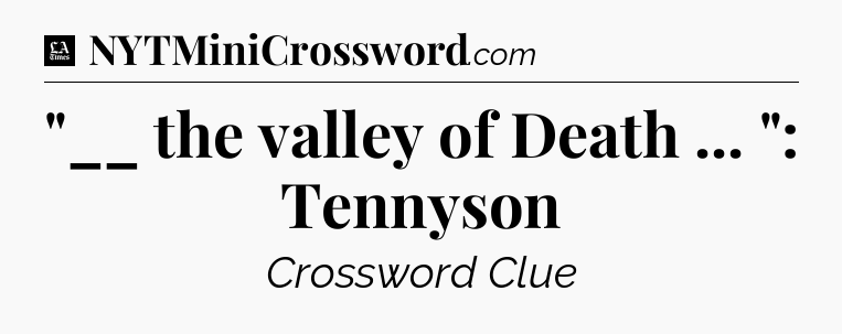 The clue “”__ the valley of Death … “: Tennyson” most recently appeared in a LA Times Crossword on September 28, 2019.