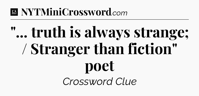 The clue “”… truth is always strange; / Stranger than fiction” poet” most recently appeared in a LA Times Crossword on September 29, 2017.