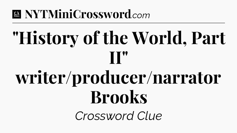 The clue “”History of the World, Part II” writer/producer/narrator Brooks” most recently appeared in a LA Times Crossword on September 4, 2024.