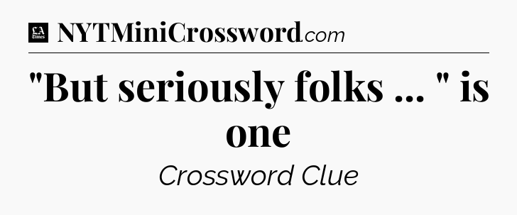 The clue “”But seriously folks … ” is one” most recently appeared in a LA Times Crossword on September 5, 2018.