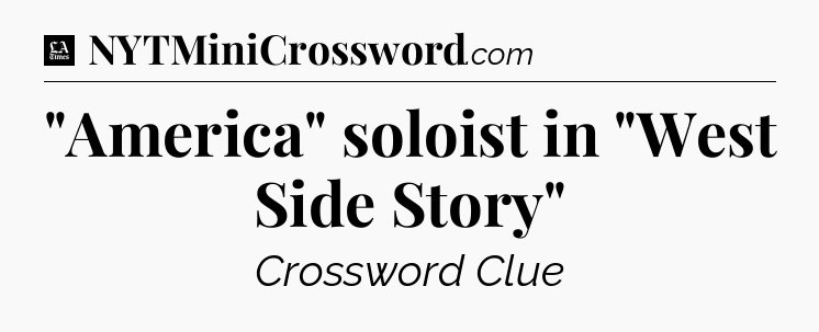 The clue “”America” soloist in “West Side Story”” most recently appeared in a LA Times Crossword on September 6, 2019.