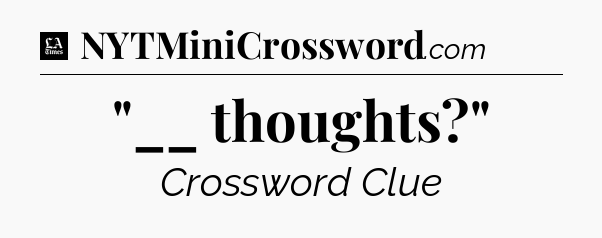 The clue “”__ thoughts?”” most recently appeared in a LA Times Crossword on September 6, 2020.