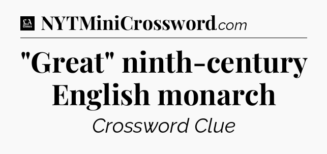 The clue “”Great” ninth-century English monarch” most recently appeared in a LA Times Crossword on September 7, 2018.