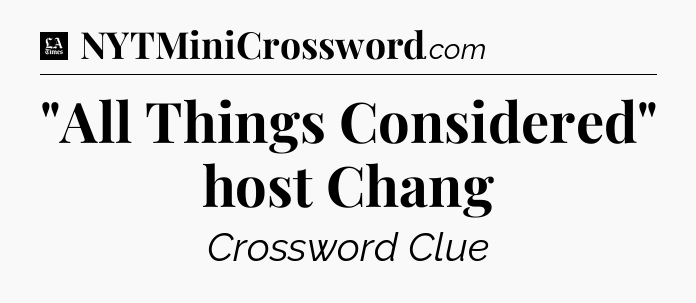 The clue “”All Things Considered” host Chang” most recently appeared in a LA Times Crossword on September 8, 2024.
