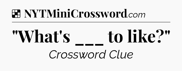 The clue “”What’s ___ to like?”” most recently appeared in a NYT Crossword on October 1, 2025.