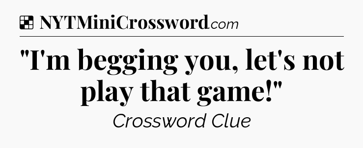 The clue “”I’m begging you, let’s not play that game!”” most recently appeared in a NYT Crossword on October 14, 2018.