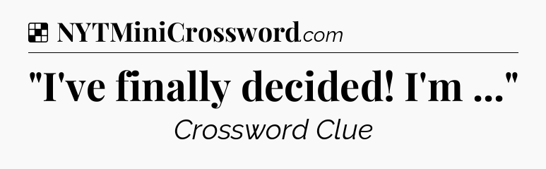 “I’ve finally decided! I’m …” NYT Crossword Answer is: