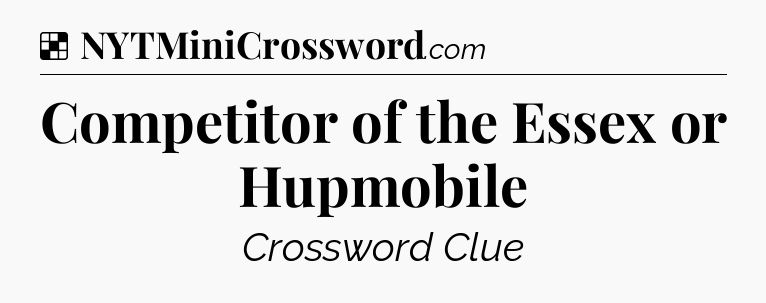 The clue “Competitor of the Essex or Hupmobile” most recently appeared in a NYT Crossword on October 16, 2018.