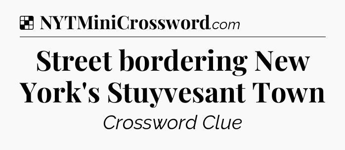 The clue “Street bordering New York’s Stuyvesant Town” most recently appeared in a NYT Crossword on October 24, 2010.