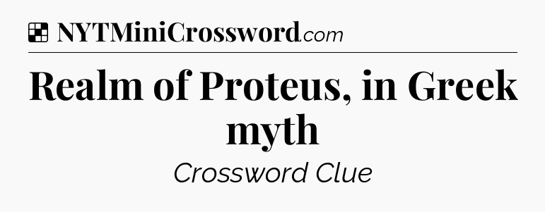 The clue “Realm of Proteus, in Greek myth” most recently appeared in a NYT Crossword on October 4, 2007.