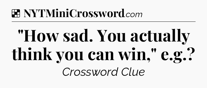 The clue “”How sad. You actually think you can win,” e.g” most recently appeared in a NYT Crossword on October 5, 2025.