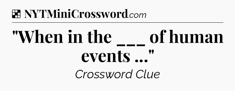 The clue “”When in the ___ of human events …”” most recently appeared in a NYT Crossword on October 5, 2025.