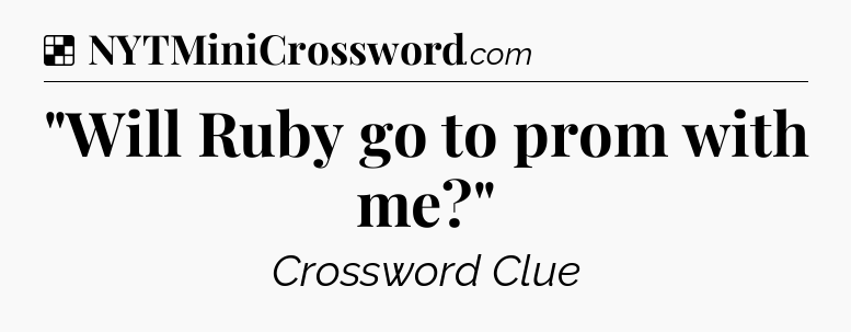 The clue “”Will Ruby go to prom with me?”” most recently appeared in a NYT Crossword on October 8, 2025.