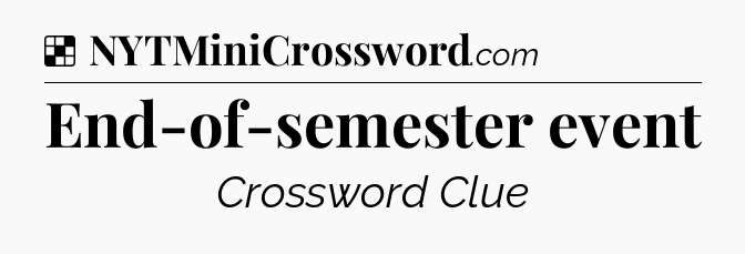The clue “End-of-semester event” most recently appeared in a NYT Crossword on December 12, 2010.