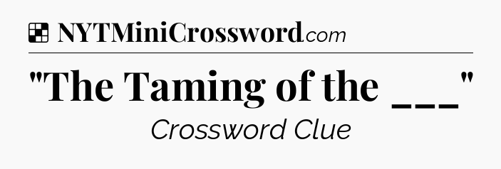 The clue “”The Taming of the ___”” most recently appeared in a NYT Crossword on December 6, 2010.