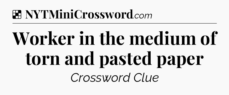 The clue “Worker in the medium of torn and pasted paper” most recently appeared in a NYT Crossword on March 5, 2010.
