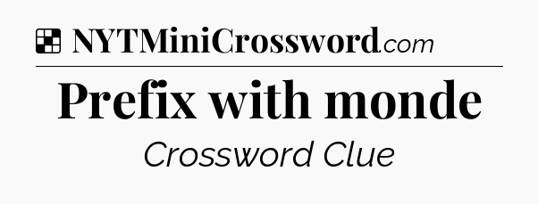 The clue “Prefix with monde” most recently appeared in a NYT Crossword on April 25, 2010.