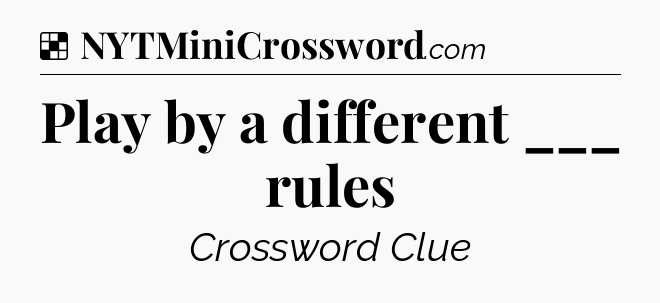 The clue “Play by a different ___ rules” most recently appeared in a NYT Crossword on June 30, 2010.