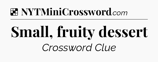 The clue “Small, fruity dessert” most recently appeared in a NYT Crossword on July 12, 2009.