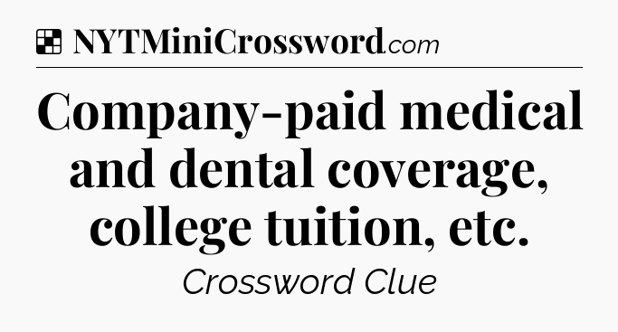 The clue “Company-paid medical and dental coverage, college tuition, etc” most recently appeared in a NYT Crossword on July 6, 2009.
