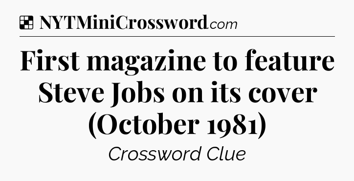 The clue “First magazine to feature Steve Jobs on its cover (October 1981)” most recently appeared in a NYT Crossword on July 9, 2025.