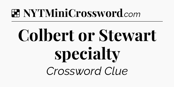 The clue “Colbert or Stewart specialty” most recently appeared in a NYT Crossword on August 11, 2010.