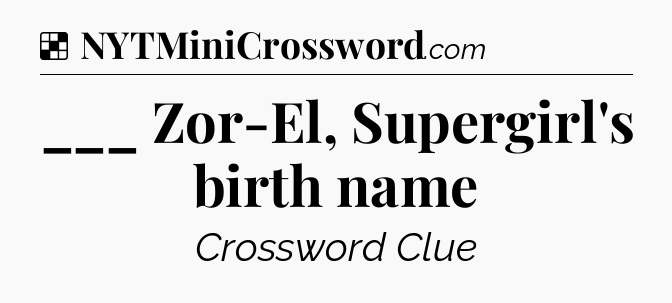 The clue “___ Zor-El, Supergirl’s birth name” most recently appeared in a NYT Crossword on August 5, 2010.