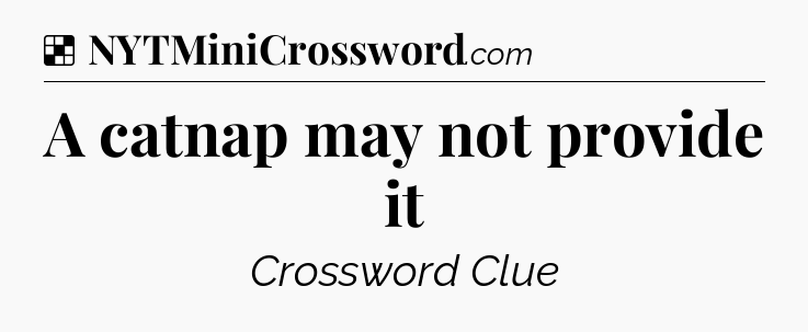 The clue “A catnap may not provide it” most recently appeared in a NYT Crossword on September 11, 2010.