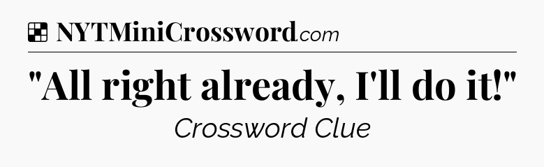 The clue “”All right already, I’ll do it!”” most recently appeared in a NYT Crossword on September 17, 2025.