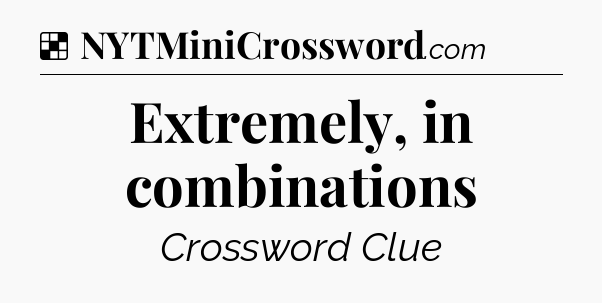 The clue “Extremely, in combinations” most recently appeared in a NYT Crossword on September 24, 2009.