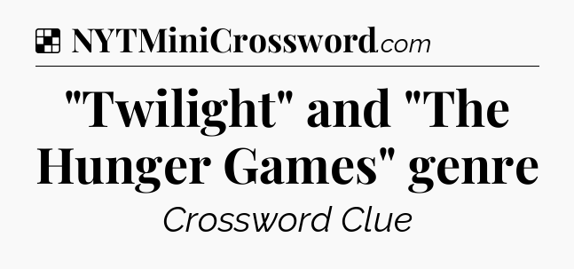The clue “”Twilight” and “The Hunger Games” genre” most recently appeared in a NYT Crossword on September 29, 2025.